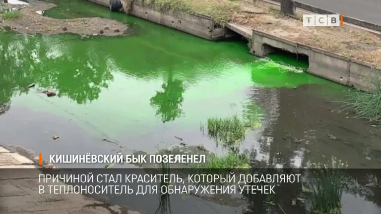 В Кишинёве река Бык, которая впадает в Днестр, снова окрасилась в ядовито-салатовый цвет. Местные жители сняли на фото и видео...